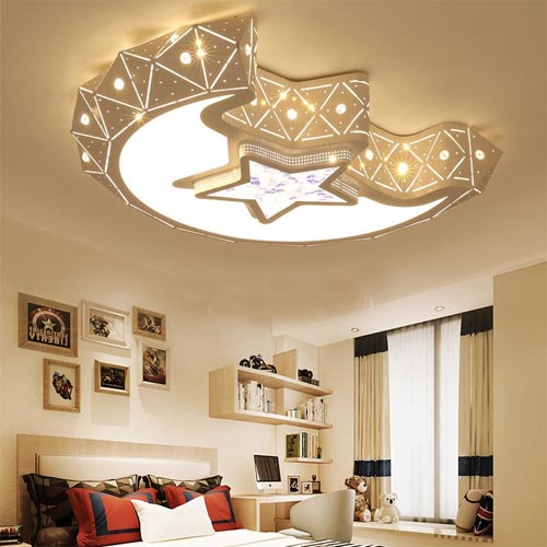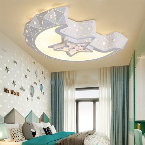 Đèn ốp trần, ốp tường giúp tiết kiệm không gian cho phòng khách một cách hoàn hảo. Loại đèn trang trí phòng khách này tạo không gian thoáng đãng và thoải mái hơn, tuy đơn giản nhưng lại đầy phong cách. Với ánh sáng trầm ấm, đèn có thể sử dụng cho phòng ngủ của bạn hay của bé yêu. Mẫu đèn ốp trần LED trang trí mặt trăng sáng tạo với thiết kế đơn giản nhưng sẽ biến cho không gian chung của gia đình bạn trở nên nhẹ nhàng, thân mật hơn.