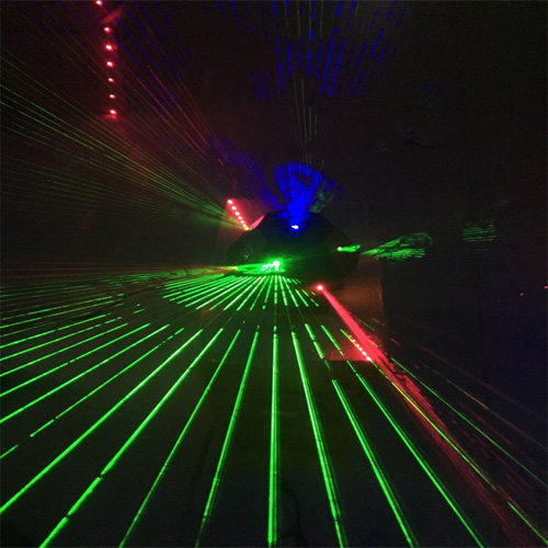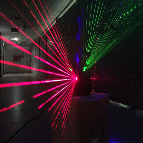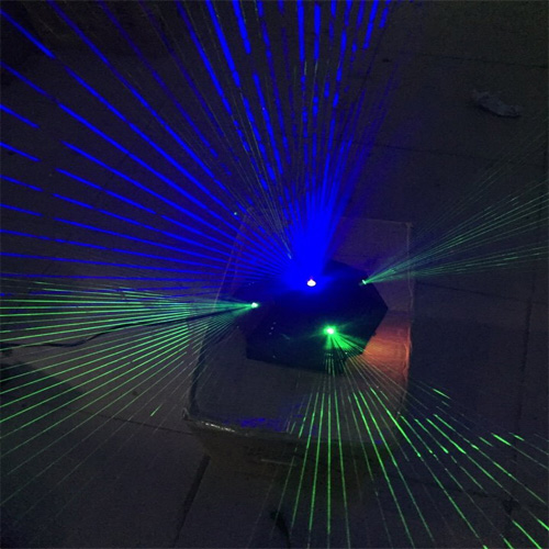 Đèn trang trí laser light được thiết kế hình dạng nấm 9 mắt quét tia phủ rộng, thích hợp lắp trần trang trí sân khấu phòng hát karaoke từ 25 đến 30m vuông. Đèn laser sân khấu 9 mắt