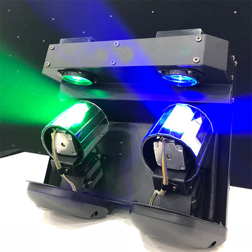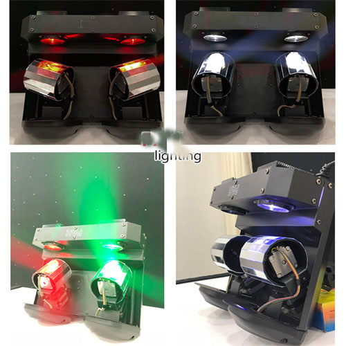 Đèn xoay karaoke được trang bị 2 lốc gương, 2 cửa có thể xoay linh hoạt chiều ngang và chiều dọc giúp tạo hàng triệu tia trong không gian sân khấu. Đèn sử dụng 2 bóng LED, mỗi bóng có công suất 10W Full Color 4 in 1.
