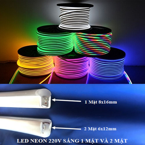 - Dây đèn led ống Neon Flex 220v có loại sáng 1 mặt và 2 mặt, rất thích ứng cho đèn hắt trần.