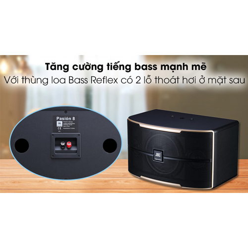 Với tiêu chí phục vụ cho karaoke được sắc nét và chuẩn về âm thanh, Nhà sản xuất JBL trang bị cho Loa karaoke JBL Pasion 8 có 2 cổng thoát hơi ở mặt sau giúp âm thanh có đường truyền ổn định, không xảy ra những hiện tượng nhiễu, méo tiếng cho âm thanh mạnh mẽ, bùng nổ.