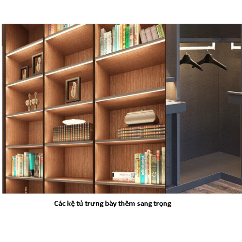 Ứng dụng máng nhôm LCC1908 trong nội thất nhà cửa, điển hình sử dụng cho các tủ kệ, bàn gỗ, tủ gỗ trưng bày sản phẩm hiện đang là một xu hướng thiết kế trong năm nay và phần lớn đã thi công trong các cửa hàng thời trang, căn phòng, tòa nhà, ..,