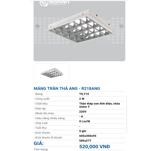 Thương hiệu: LCC Loại: MÁNG TRẦN THẢ ANG - R218ANG