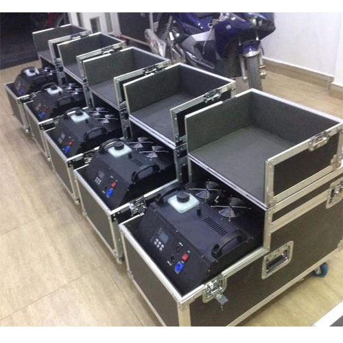 Máy phun khói lạnh 4000W chạy nước được đặt trong 1 tủ rack rất chắc chắn và được gắn 4 bánh dễ dàng dịch chuyển máy tới các vị trí khác nhau.