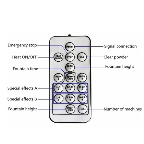 Máy phun tia lửa lạnh ngang MK-E17 có thể được điều khiển bằng DMX hoặc điều khiển từ xa, có thể linh hoạt điều chỉnh thời gian làm việc và khoảng cách phun.