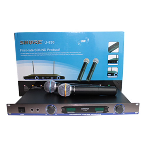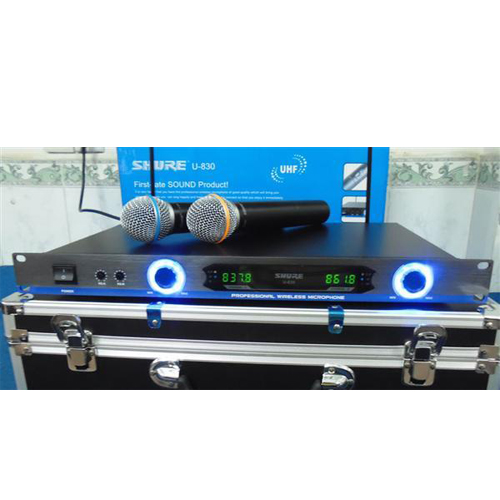 Gồm 2 Mic với sóng UHF dành cho ca hát chuyên nghiệp. - Shure U830 ra đời với những cải tiến nổi trội hơn so với các sản phẩm trước kia ở phần thiết kế hấp dẫn với hộp đựng sang trọng và chất lượng âm thanh cải thiện rất tốt. - Nếu như Micro trước kia rất kén Ampli thì Shure U830 cho ra chất tiếng mượt mà nhưng lại khá dễ chịu với nhiều hệ thống âm thanh.