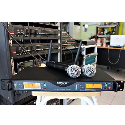 Shure UR24D sản xuất nhằm cho sân khấu chuyên nghiệp, phòng hát với nhau và hệ thống âm thanh trung bình, lớn hoặc sử dụng cho các cung Thánh, nhà thờ, trung tâm hội nghị.