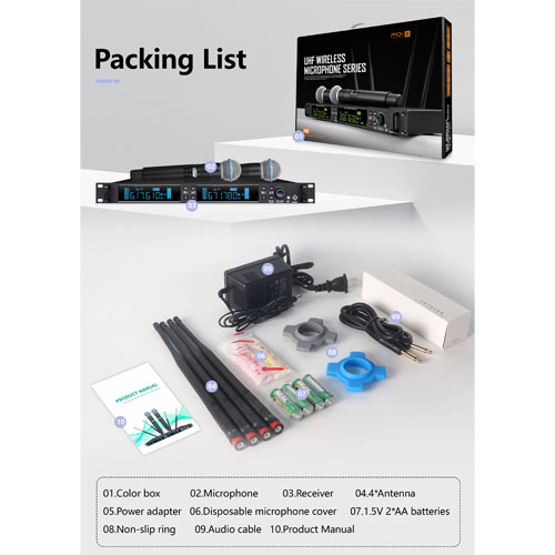 * Công nghệ tránh nhiễu tần số đầy đủ, 10 bộ sử dụng máy chồng chéo đồng thời, không vượt tần số.