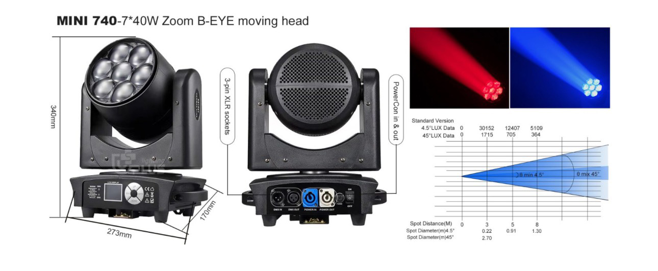 Thương hiệu: lccvn Loại: Mini 740 4in1 RGBW wash zoom Đầu di chuyển mắt B 7 * 40w đèn sân khấu có pixel