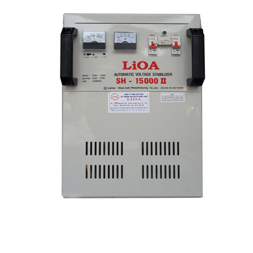 - Ổn áp 1P SH LiOA SH-15000 II 15kVA (trắng sữa) ứng dụng nguyên lý điều chỉnh động cơ giúp dòng điện ổn định liên tục. Thiết bị này không sinh ra điện mà làm nhiệm vụ ổn định điện áp để cấp điện cho các thiết bị tiêu dùng điện khác như: tivi, tủ lạnh, điều hòa, máy giặt... trong gia đình hoặc cho các loại máy công nghiệp khác trong nhà máy, xí nghiệp.