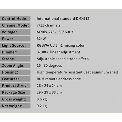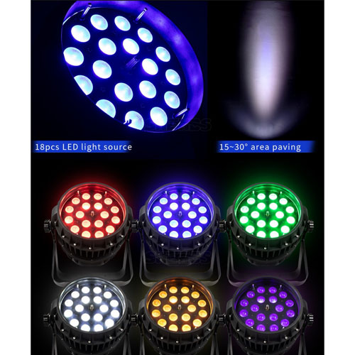 Thương hiệu: lCCVN Loại: Par Light 18x18W 6in1 RGBWA + UV Outdoor IP65 Không thấm nước LED Zoom
