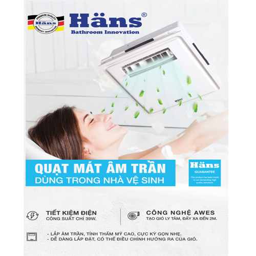 Quạt mát âm trần công tắc Häns là dòng quạt âm trần có mặt đầu tiên tại Việt Nam, được nhà hãng Häns cho ra mắt vào đầu năm 2020.